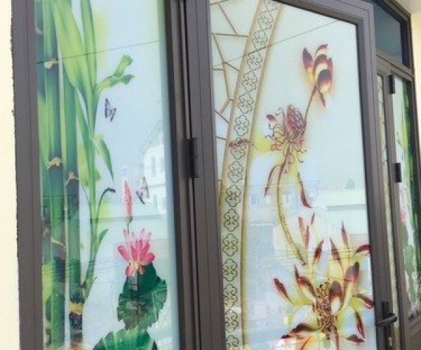 CỬA XINGFA NHẬP KHẨU 2 CÁNH KÍNH HOA VĂN TẠI QUẬN 2