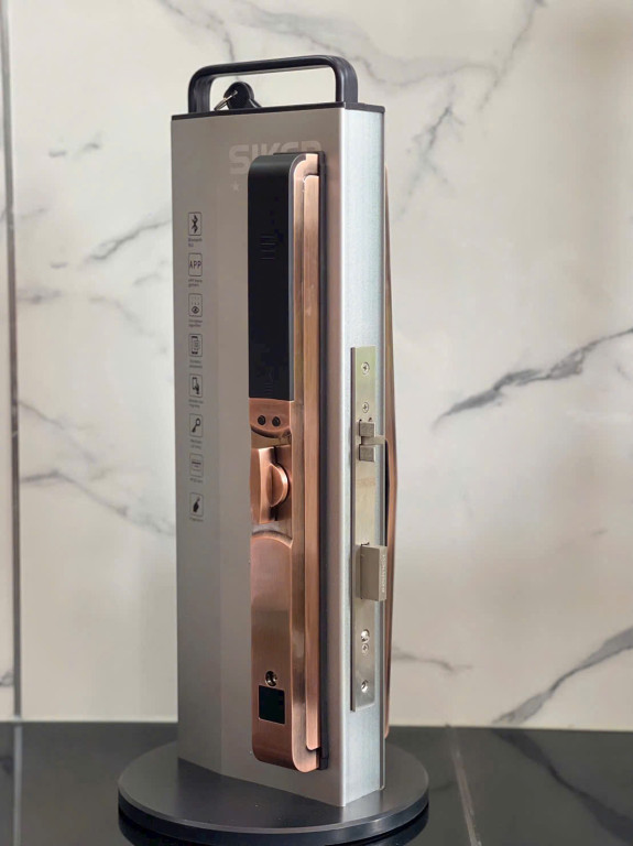Với mặt ngoài làm bằng kính cường lực cao cấp, kết hợp cùng lớp vỏ màu đồng hồng (Rose Gold) hoặc các tông màu hiện đại khác (tùy chọn), Khóa SIKER KTS 142.3D không chỉ là một thiết bị an ninh mà còn là một điểm nhấn kiến trúc. Thiết kế liền khối, tối giản giúp khóa dễ dàng hòa hợp với nhiều phong cách cửa, từ cửa gỗ cổ điển đến cửa thép hiện đại.