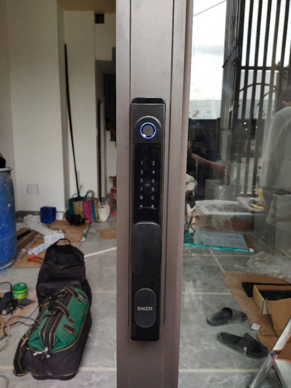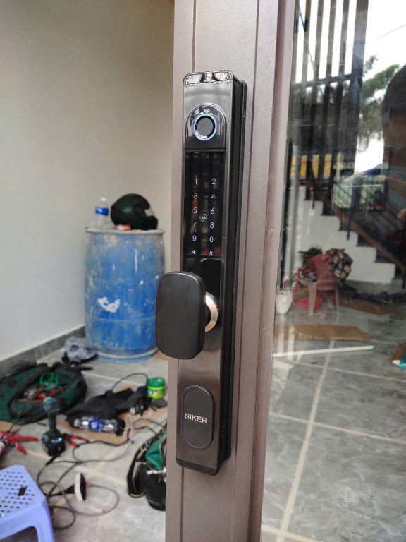 - Khóa thông minh Siker KTS106-1 đang được lắp đặt chuyên nghiệp.