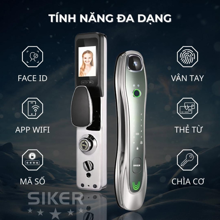 Ngoài Face ID, Siker KTS125 còn hỗ trợ nhiều phương thức mở khóa khác nhau, mang đến sự linh hoạt và tiện lợi cho người dùng: