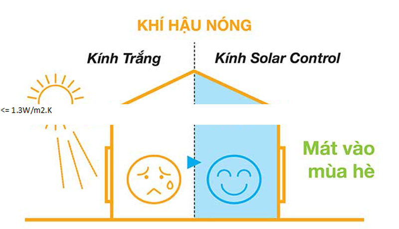 Kính Solar Control có thể cản được đến 65% năng lượng từ mặt trời, đồng thời có thể cản đến 99% tia UV truyền vào trong nhà. Giúp không gian bên trong nhà mát mẻ hơn, tiết kiệm năng lượng cho hệ thống điều hòa không khí.