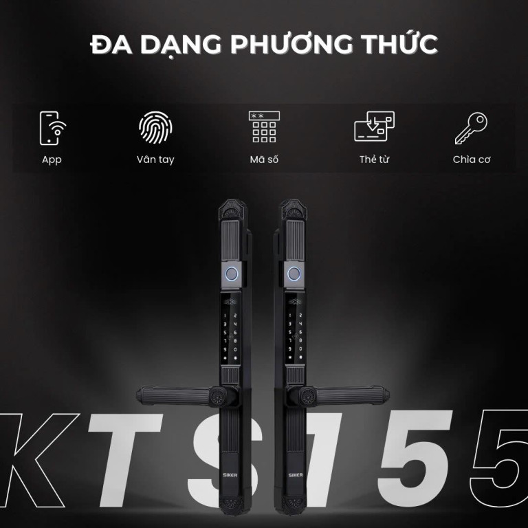- Đa dạng phương thức mở khóa: Khóa thông minh Siker KTS155 cung cấp đến 5 phương thức mở khóa linh hoạt: